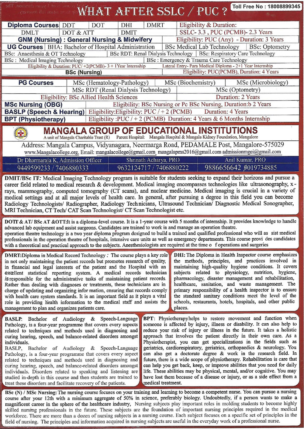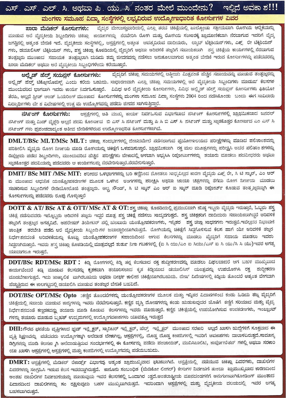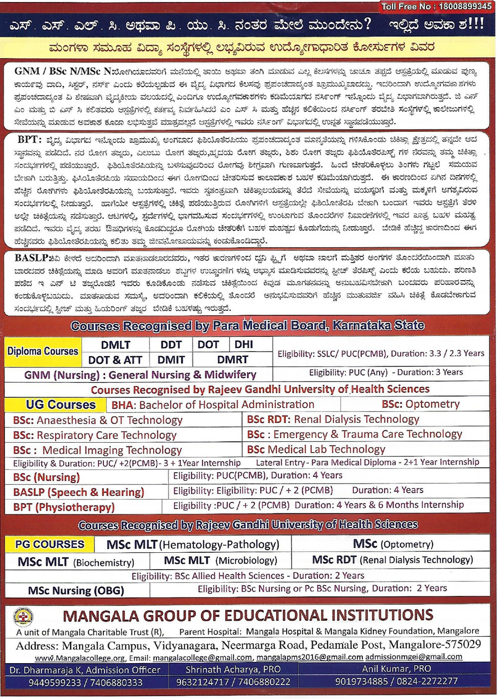 Get the list of all courses offered by Mangala Group of Educational Institutions