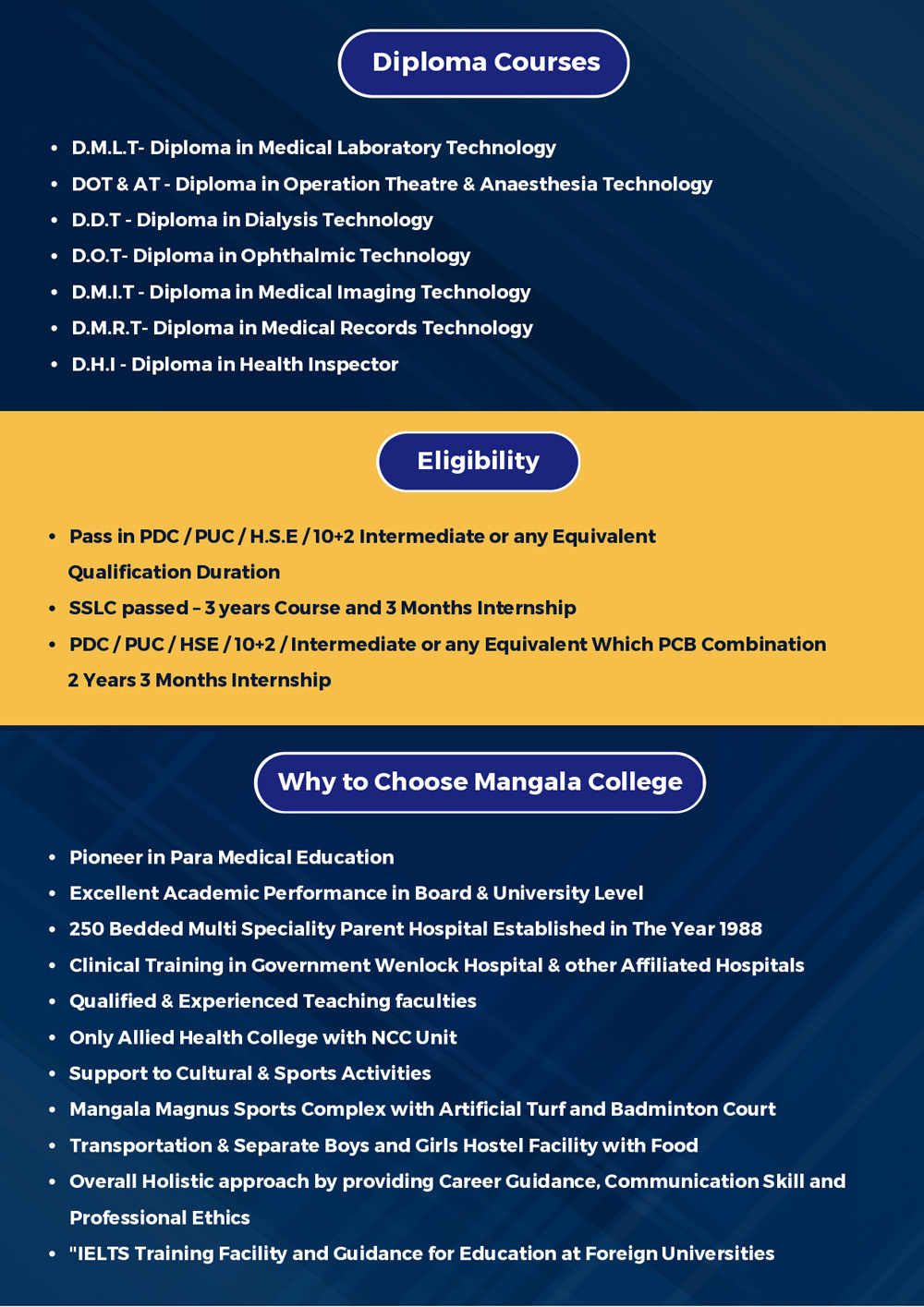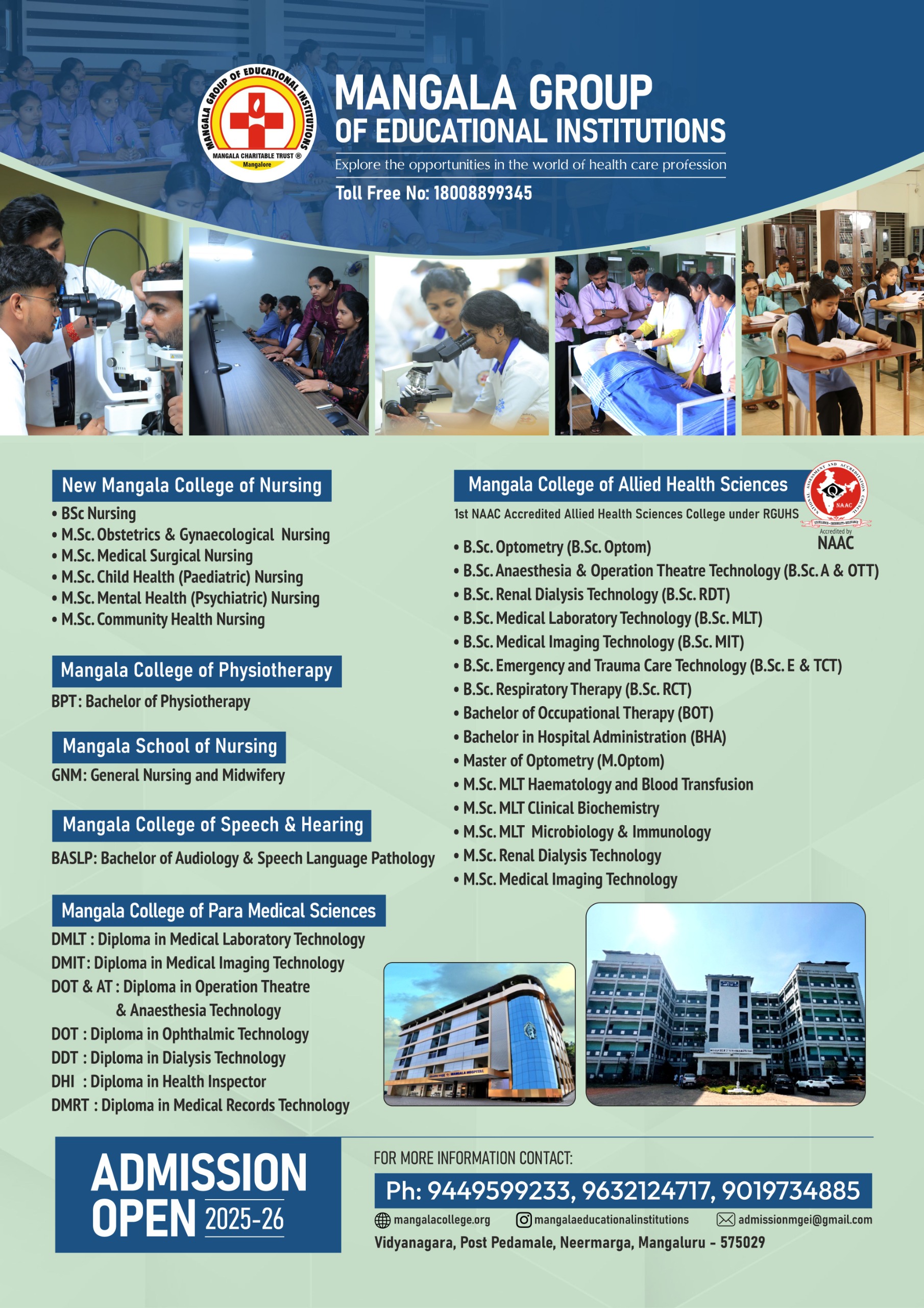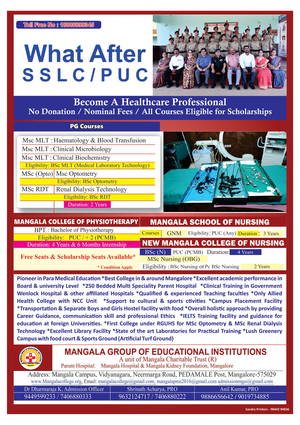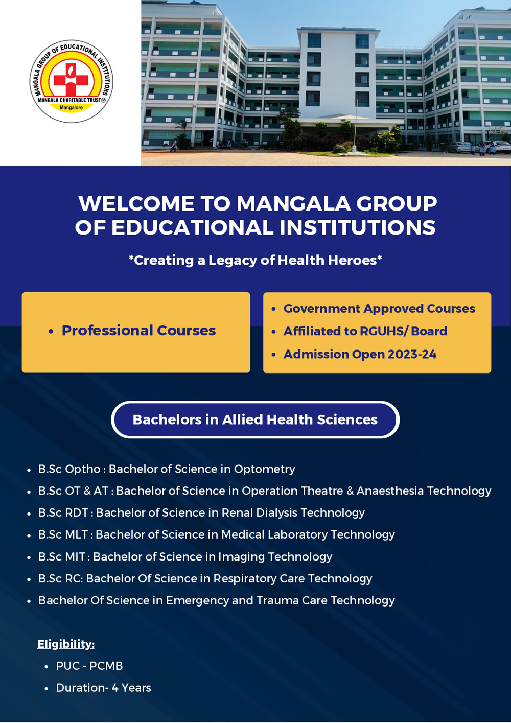Get the list of all courses offered by Mangala Group of Educational Institutions